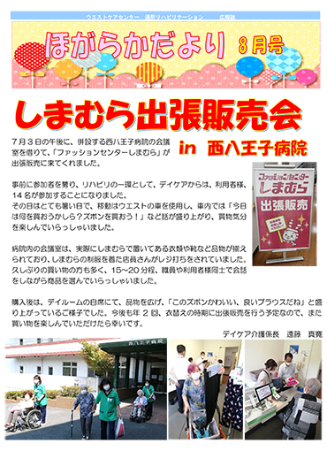 通所リハビリでのイベントや訓練等の報告を行っている広報誌「ほがらかだより」8月号が発行されました。